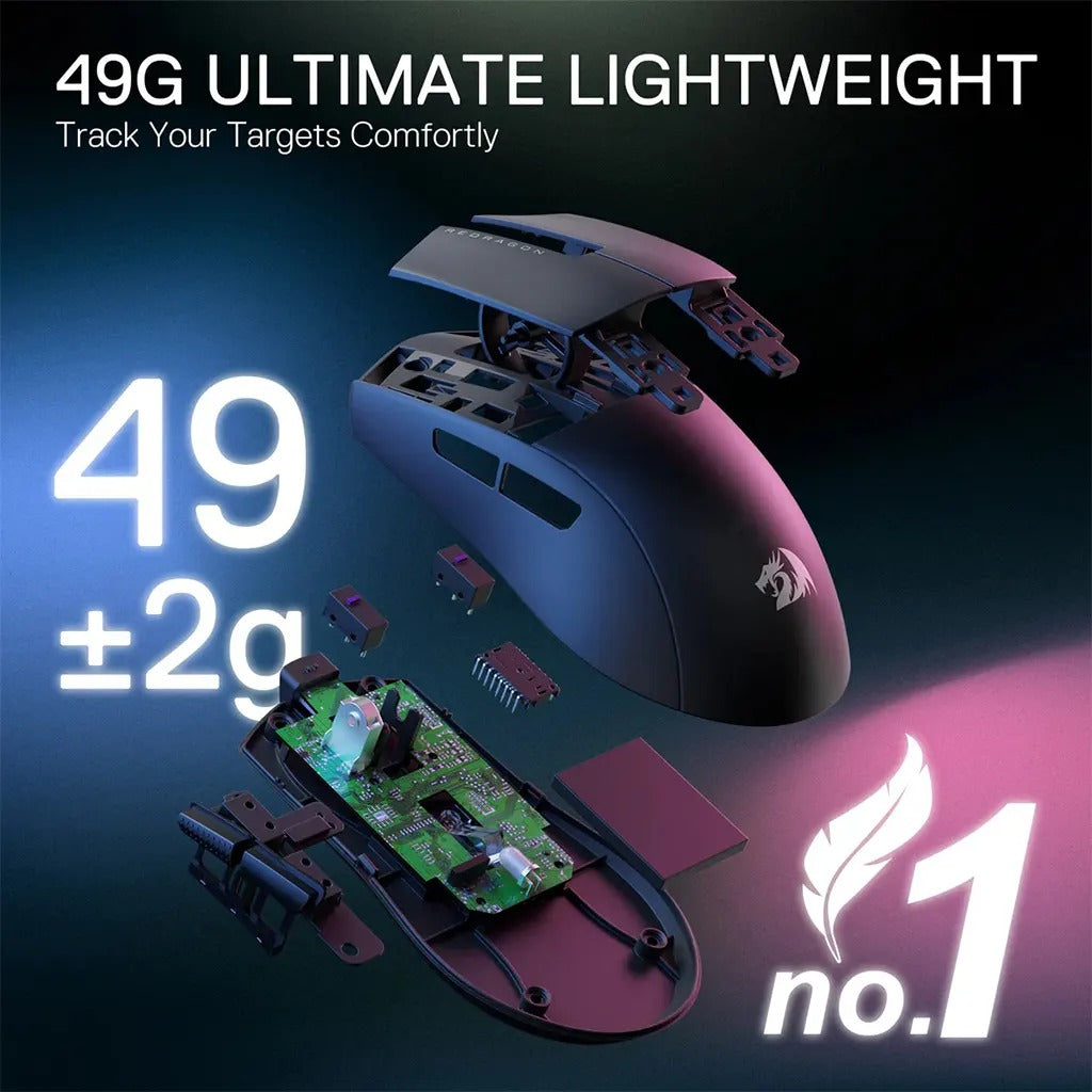 Coming in hot is the LIGHTEST Redragon mouse, selected ultra-light materials and well-crafted form to offer the fastest, cleanest, and fully controlled mouse using. You are controlling the mouse with no hassle and no extra effort.
